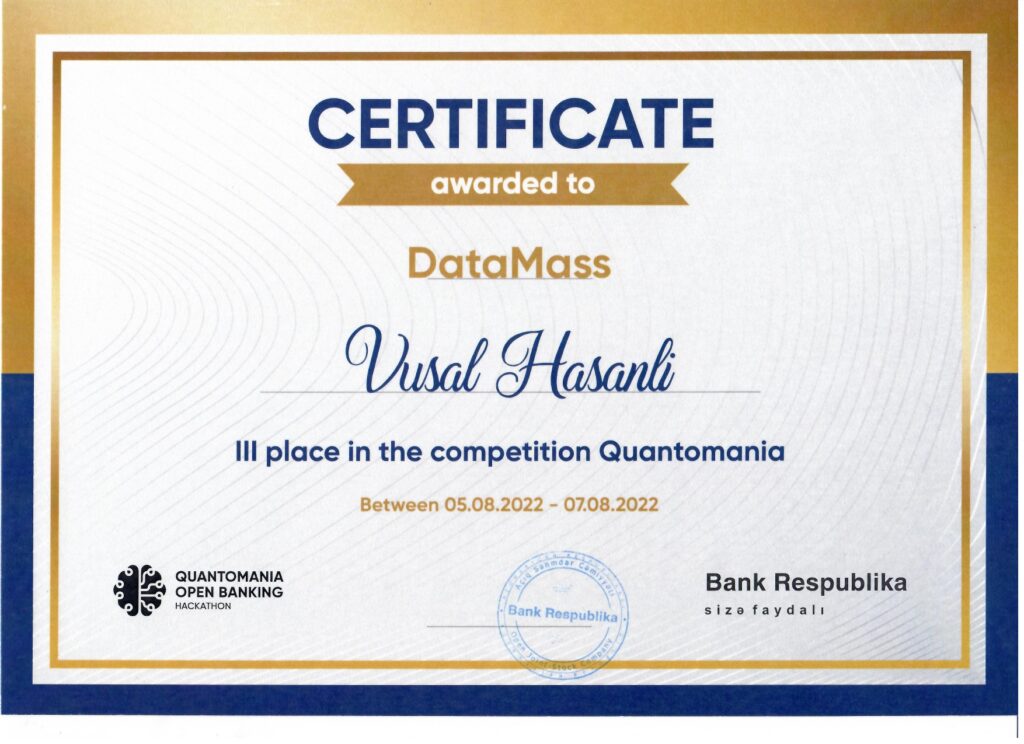 Hello! My name is Vusal, and I am a practitioner of computer vision with two years of experience in the field. I am passionate about using technology to help solve real-world problems, and I am constantly seeking out new challenges to push my skills to the limit.